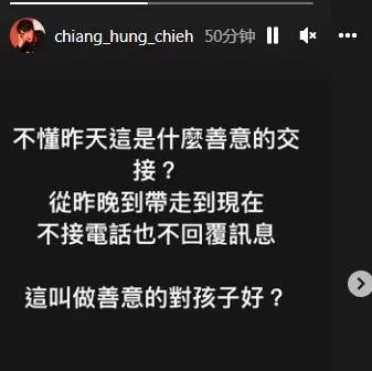 江宏杰突然动怒,在社交平台写下:" 不懂昨天这是什么善意的交接?从昨晚带走到现在,不接电话也不回复讯息,这叫做善意的对孩子好?"