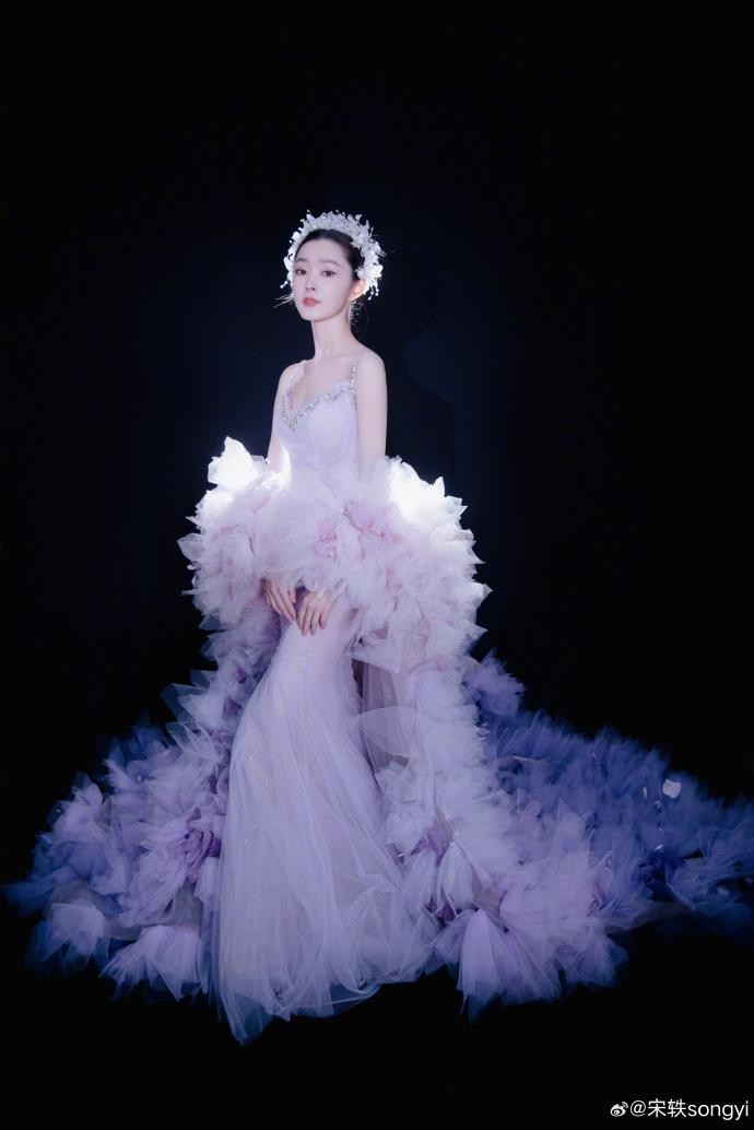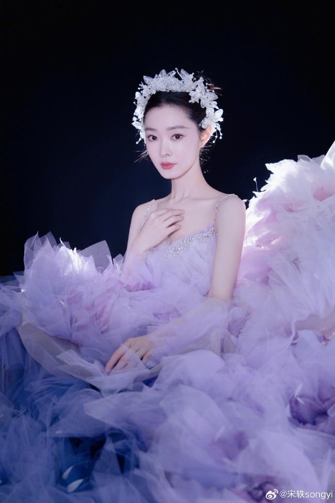 ZAKER 娱乐 2 月 2 日讯,宋轶一组舞台造型花絮写真照曝光,宋轶头戴精致流苏发箍,妆容清透,身穿紫色修身长裙尽显苗条身材,礼服两侧蓬松的紫纱宛如公主的裙摆仙气飘逸,舞台布景花落成雨,静立其中,简直就是传说中的花仙子啊!