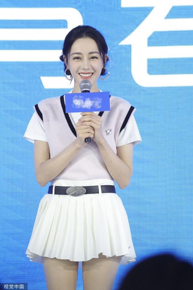 迪丽热巴穿马甲配短裙现身 身材纤细扎双丸子头活泼可爱