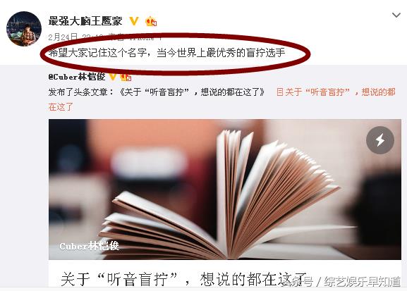 甚至王鹰豪也转发林恺俊长篇文章称:希望大家记住这个名字,当今世界最优秀的盲拧选手!