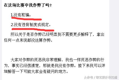 这对于恺俊是不公平的。节目组让我录那段视频(番外里申明逆序还原是符合规则的视频)的时候,他们的说法好像就是倒着还原是规则的一部分(而且双方选手都清楚)。之后几天我才在一个中国魔友那里了解真相。尽管我要求他们我拒绝涉及这件事,他们还是这么做了,对此我很失望!