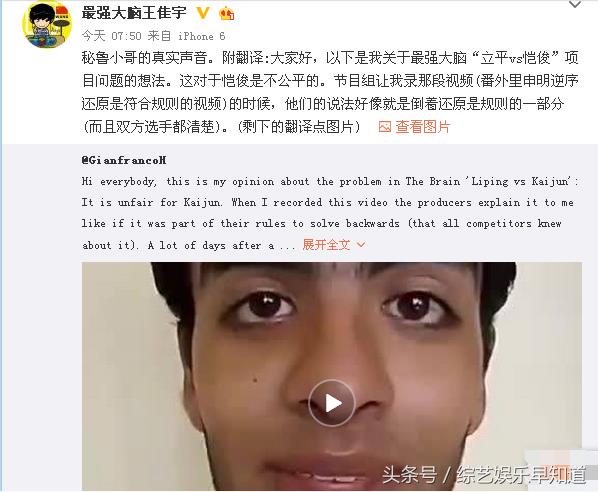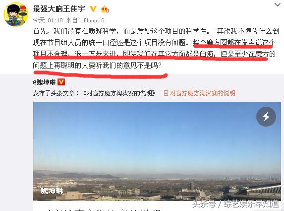 同样参加过比赛的选手王佳宇也不遗余力支持林恺俊,整个魔方圈都在发声说这个项目不合理,退一万步来讲,即使我们在其它方面都是白痴,但是至少在魔方的问题上再聪明的人要听我们的意见不是吗?