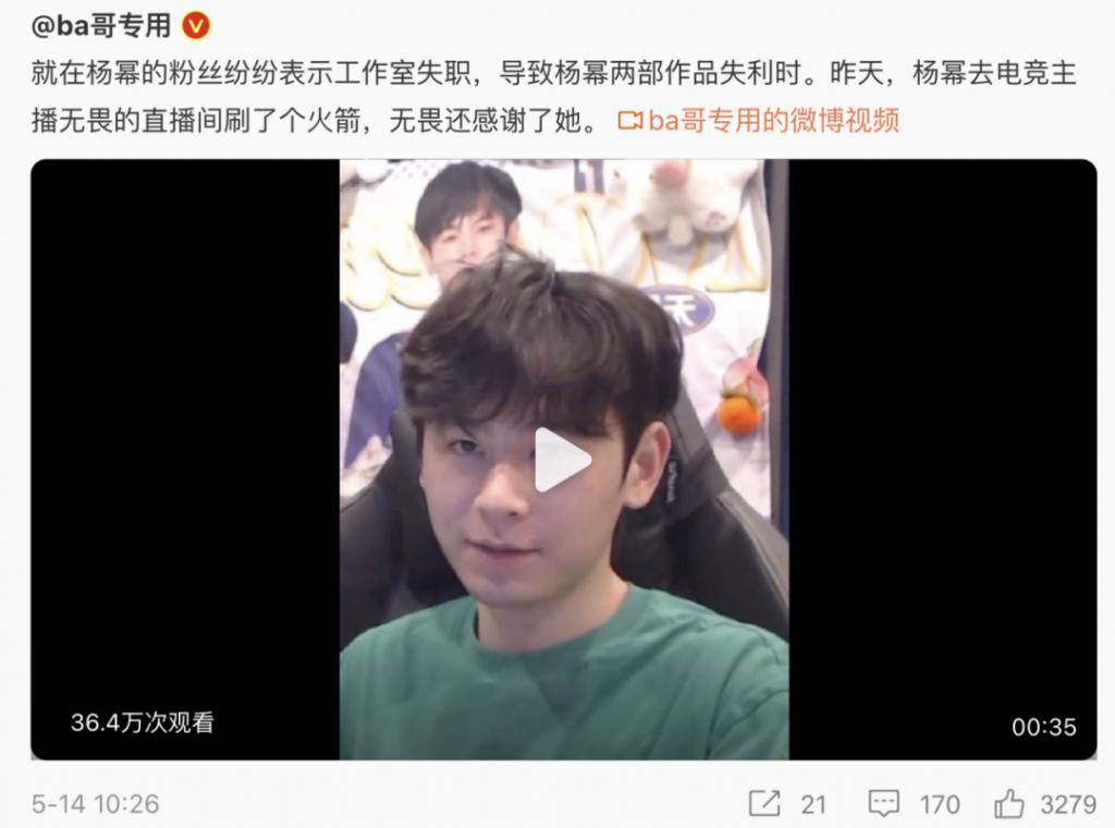 就在最新一次粉丝控诉工作室失职时,杨幂气定神闲地去游戏主播的直播间刷火箭。