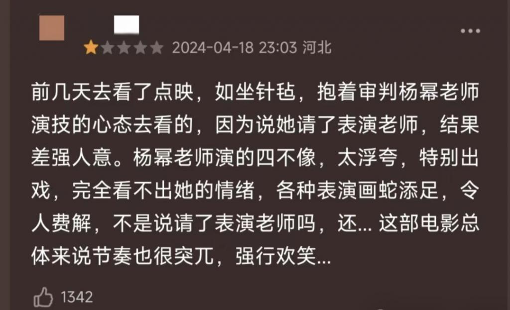 据说杨幂在电影中的表现还不错,也有自己的高光段落,能看出努力,但也有影评人表示用力稍猛,总的来说是在踏踏实实做戏。
