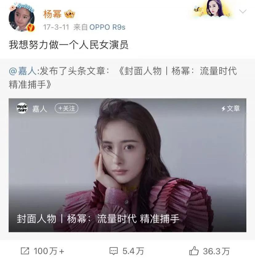 而要成为人民女演员,势必要打破那个杨幂,首先便是演员这个身份。