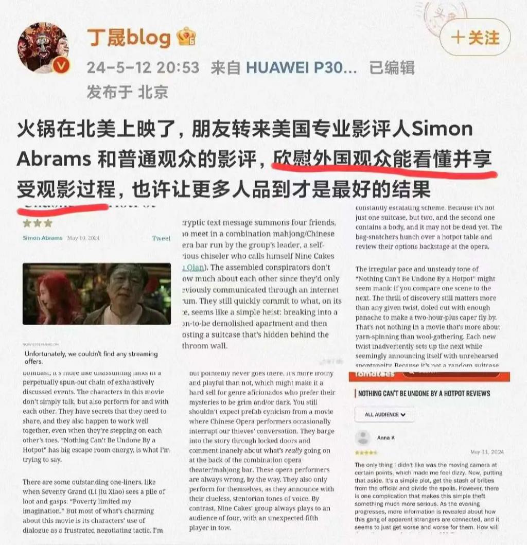 后来丁晟持续破防,非说《火锅》在海外口碑了得(并不),主打一个嘴硬。