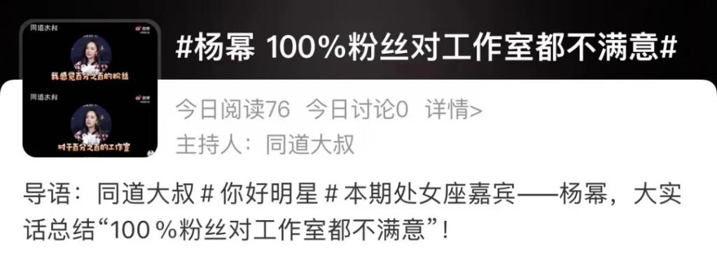 当然杨幂早就发表过金句:"100%粉丝对工作室都不满意"。