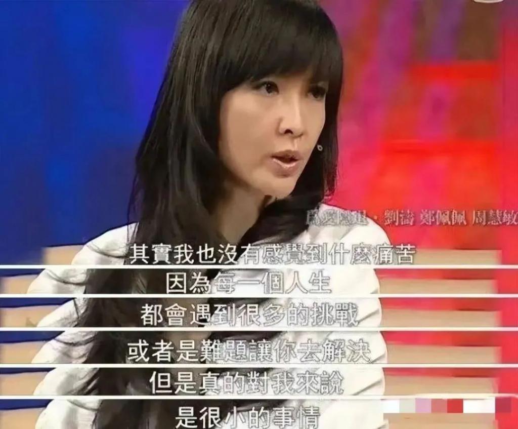面对伴侣多次背叛,周慧敏依然选择与其结婚,原因不得而知,关于这段感情的起起伏伏,她只说了句:"那不是一件天大的事。"