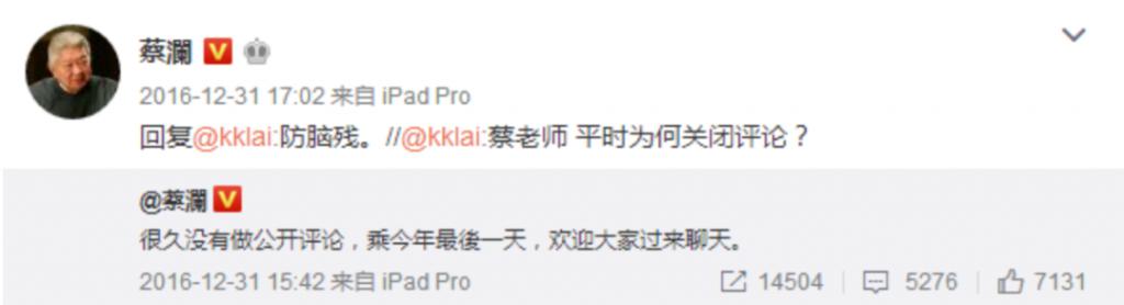 至于为什么,用蔡老自己的话来说可能就是: