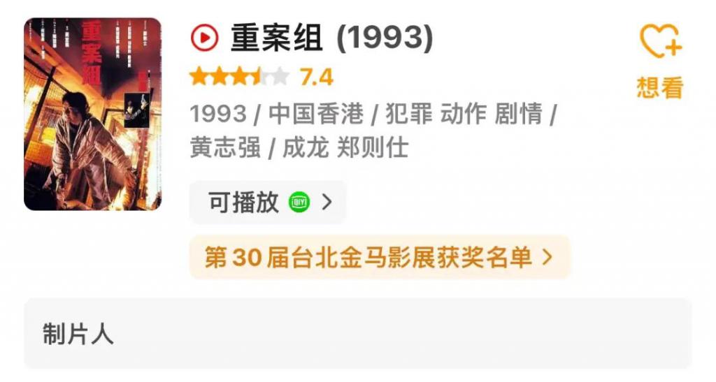 而票房第七的《重案组》依旧由蔡澜担任制作人。