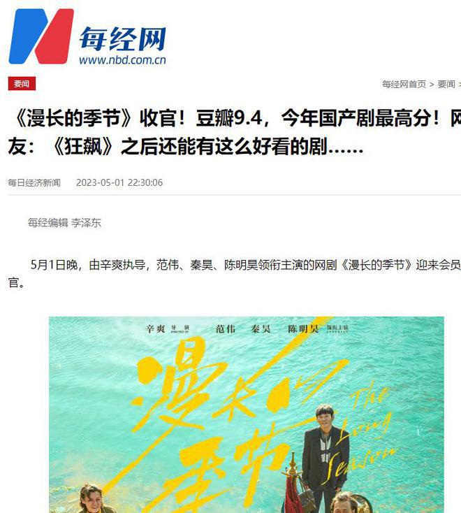 《漫长的季节》收官!豆瓣 9.4,今年国产剧最高分!网友:《狂飙》之后还能有这么好看的剧 ……(每日经济新闻 2025-5-1)