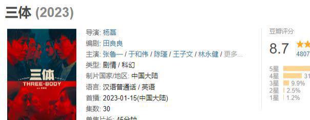 《三体》成功了,在国外也有一定热度,是科幻电视剧的一大进步。