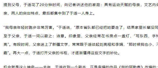 母亲喜欢运动,父亲热爱文艺,还曾跟他聊起过这部戏的原著作者,这何尝不是一件巧事。