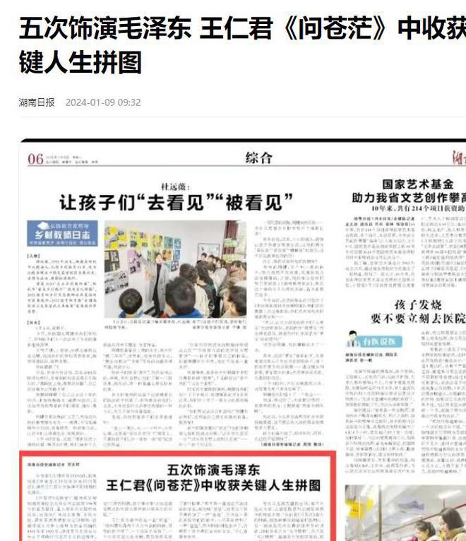 五次饰演毛泽东 王仁君《问苍茫》中收获关键人生拼图(湖南 · 日报 2024-1-9)