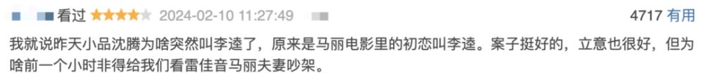 比如马丽怀疑雷佳音和初恋有一腿,反反复复找茬,居然能成为电影的核心笑点;