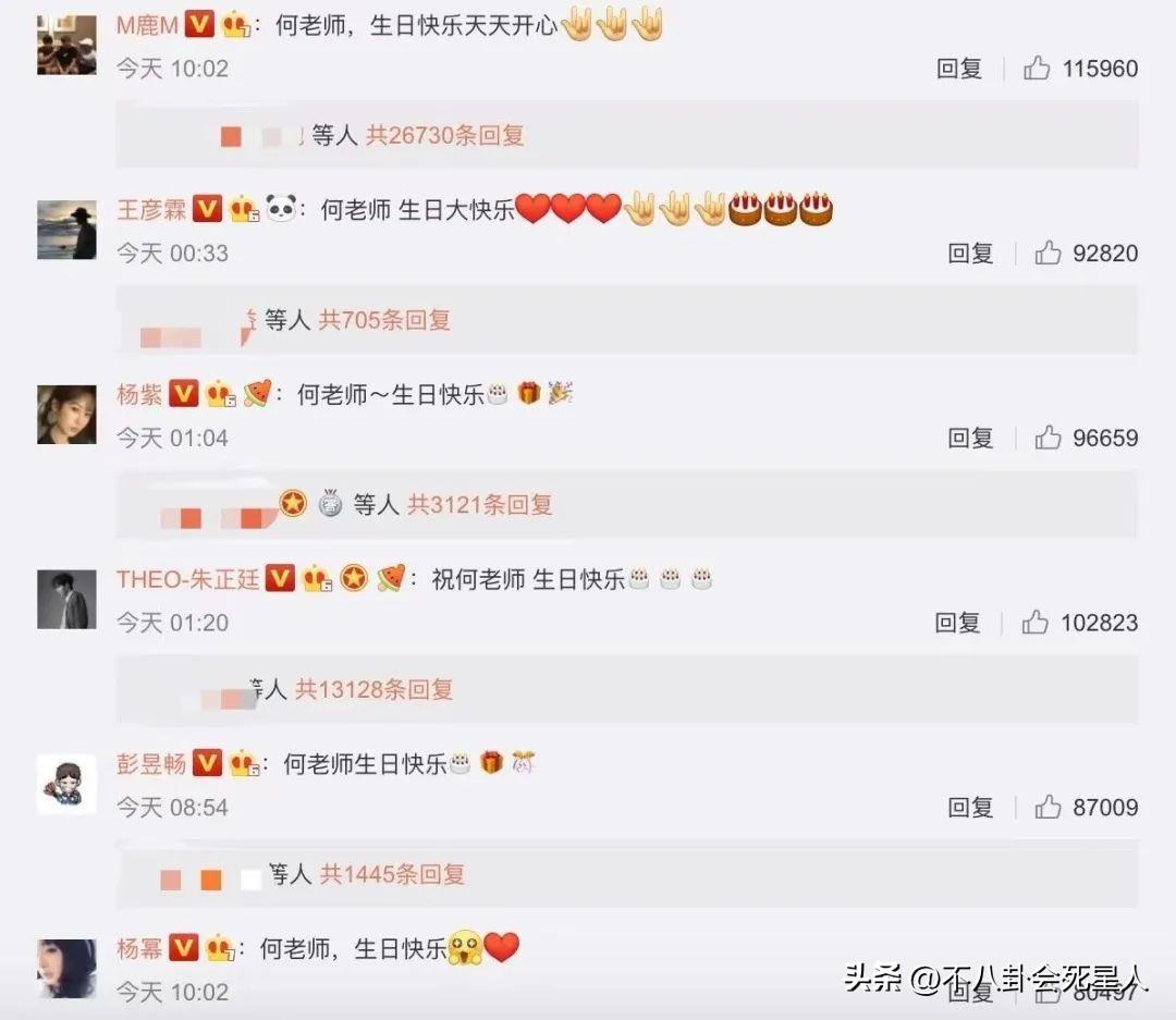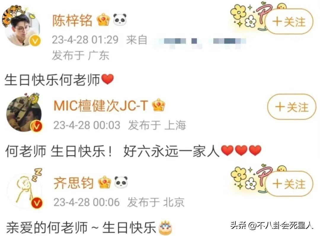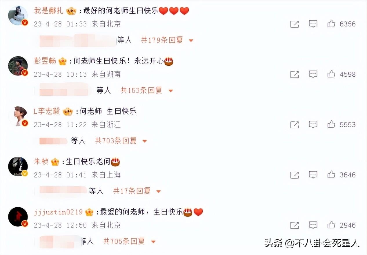在何炅生日动态评论区占到前排位置的有娜扎、彭昱畅、主持人朱桢、李宏毅、黄明昊等人,甚至羽毛球世界冠军鲍春来也送上了祝福。看来何老师的交友圈很广。
