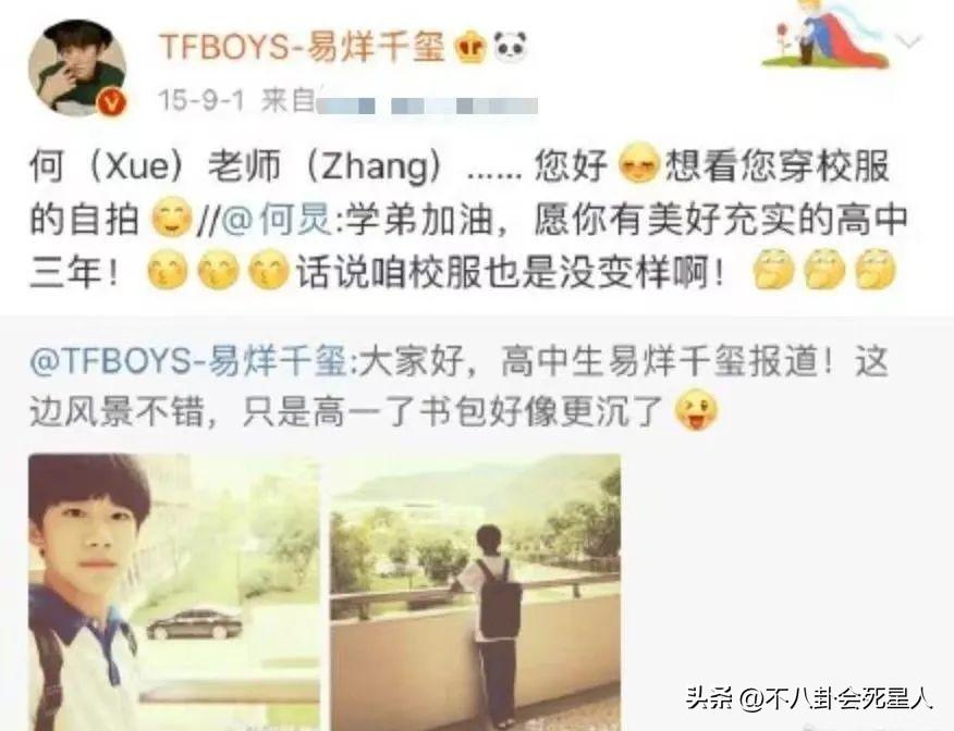 暖心的何炅也准备了两套高中校服圆了易烊千玺。这时易烊千玺都已经上大学了,何炅还能记得他很早以前发的动态。