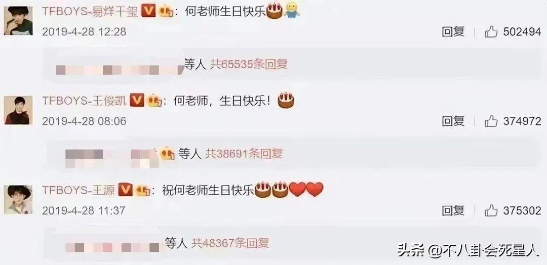 2025年,TFBOYS组合的易烊千玺、王俊凯和王源都为何炅送祝福,易烊千玺一条评论的点赞量更是达到50万。