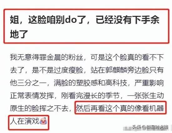 再来看金晨,据媒体爆料:金晨曾被质疑过整过容,甚至还有人吐槽她“满脸的科技与狠活”,怕她扛不住央妈的高清镜头。