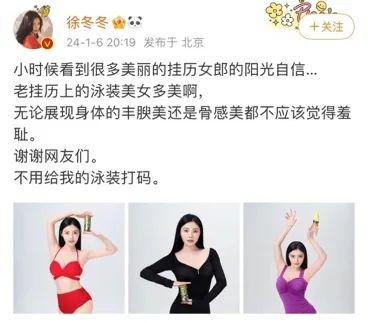 她发过一条泳装微博,认为女生不应该有身材羞耻感,穿泳装展现美丽与自信的时候,更不应该被强制 " 打码 "。