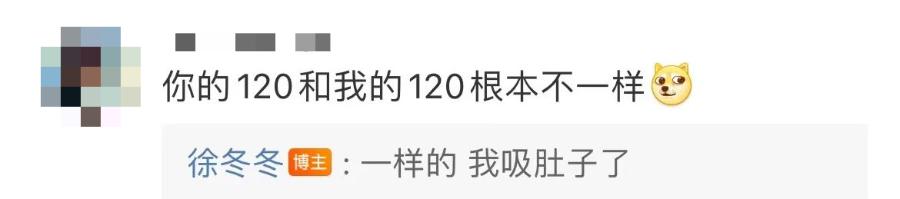 在以瘦为美、女明星不能有 3 位数体重的大气候下,徐冬冬公开表示自己 168CM,120 斤是最理想的体重。网友说她的 120 跟自己的 120 不是一个概念,她还自锤" 一样的,我吸肚子了 "。