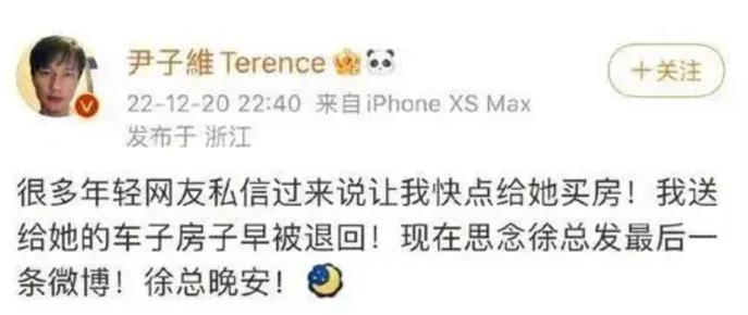 对于给他出主意的网友,尹子维回应送的车子房子都被退回了。