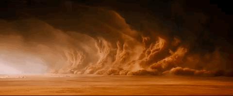 沙尘暴来袭,遮天蔽日,雷鸣电闪。