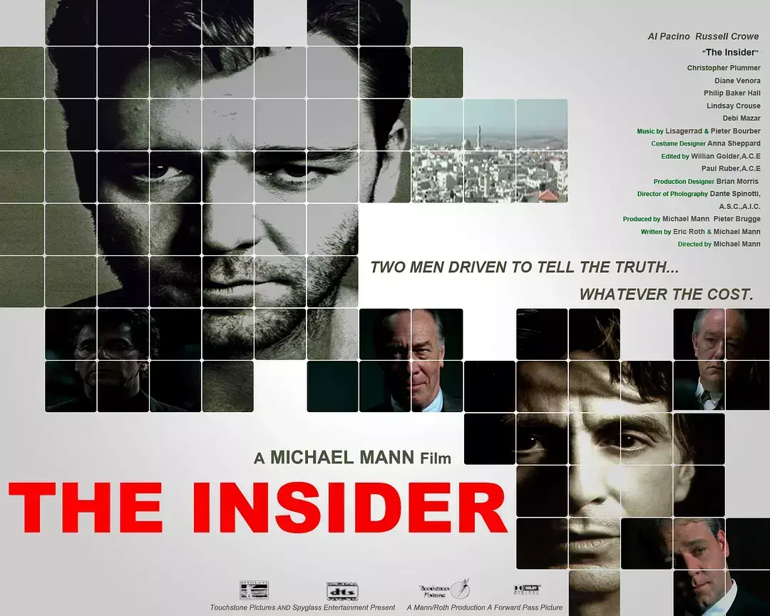 《惊爆内幕》改编自美国历史上司法和解金额最高的烟草诉讼案的真实故事,由迈克尔·曼执导,罗素·克劳、阿尔·帕西诺等主演的惊悚片。