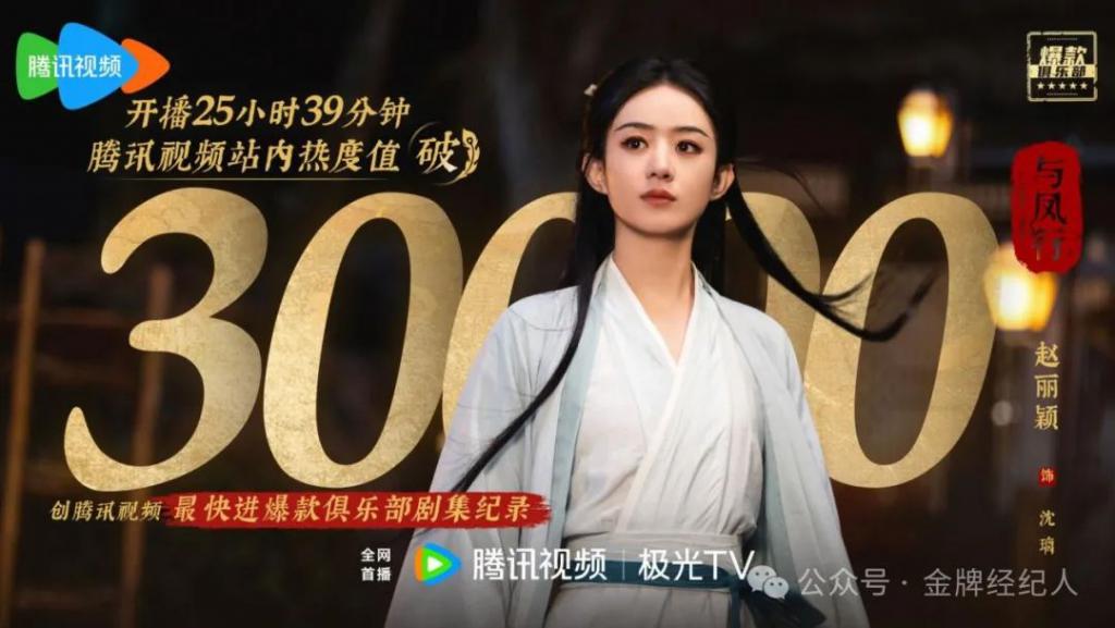 重归古装赛道,热播的《与凤行》还未播出就斩获腾讯视频站内预约人数 800 万 +,被业内外寄予厚望。开播后,更势如破竹,连破多项平台纪录。首播日,酷云湖南卫视收视率实时峰值破 0.7%,开播 25 小时热度值破 30000,创腾讯视频最快进入必看俱乐部剧集纪录。该剧在网台端全线飘红,再次印证赵丽颖的庞大路人盘。