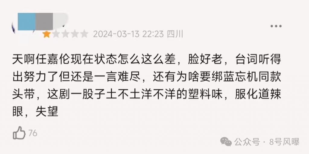 网友说,任嘉伦 34 岁的年龄还在饰演少年,本身就有些不合适,加上失去配音,角色魅力也少了很多。