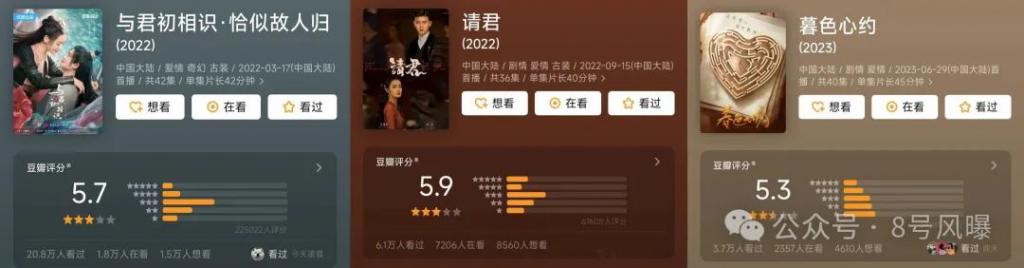 近几年的几部作品《与君初相识》《请君》《暮色心约》也都没有太大的水花。而且,当他脱离配音,又暴露出原声台词不过关的短板。