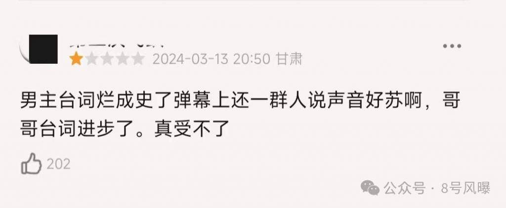 而粉丝,又陷入了自家哥哥必须演大男主的怪圈,任何剧都要去强调大男主的待遇,但忽略了其实他们的偶像根本没有那个能力去撑起一部剧。