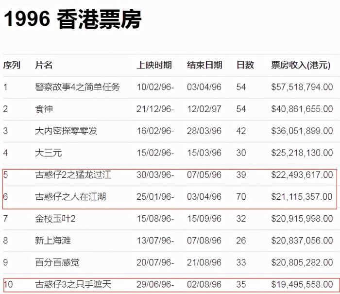 1996年,一部仅拍了7天的电影杀入香港票房榜前十。