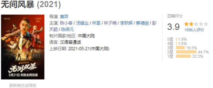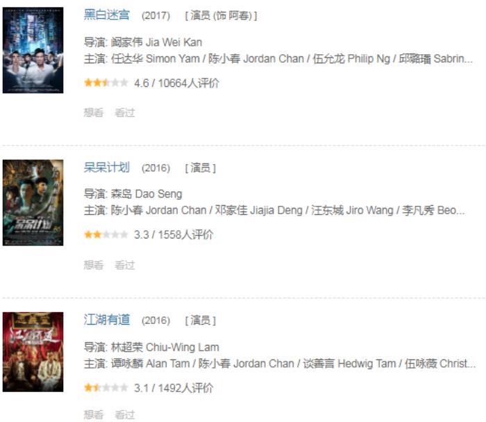 而这也是54岁的陈小春的又一部扑街之作,翻开其近年经历,2分、3分的作品并不在少数。