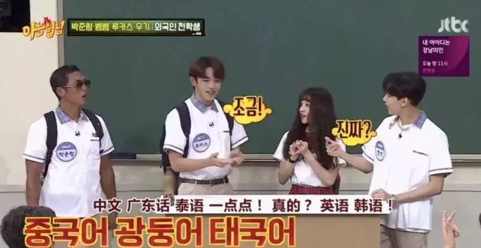 黄旭熙在节目里表示自己会说中文、广东话、泰语、英语和韩语,也是个语言天才,相信在新一季《奔跑吧》节目里一定有很多新的惊喜带给观众,至少在跑男团需要和外国友人做游戏的时候,就不用担心语言不通了!