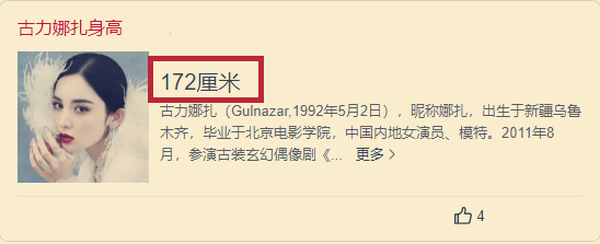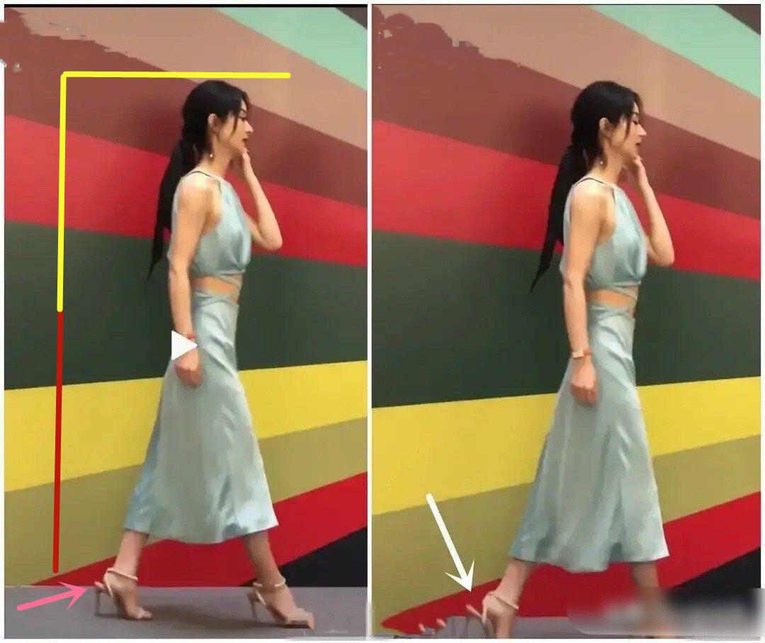 如果赵丽颖按照身高165来算,加上10cm的恨天高,高度应该在175。比身高172的古力娜扎要高一些。然而,从图片中可以看到,赵丽颖并不比古力娜扎高,反而还矮一些。