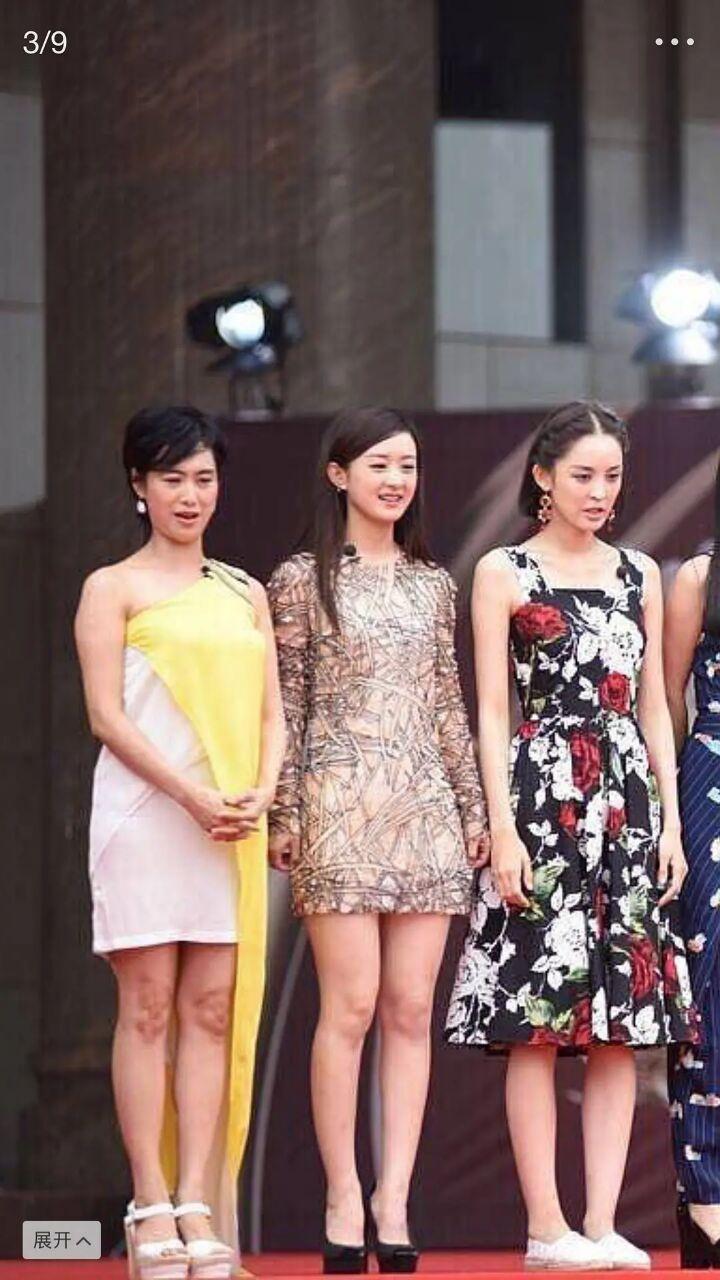 从照片中可以看到,赵丽颖、朱茵都是穿着10CM的恨天高。古力娜扎身穿平底板鞋,并且在站姿不是很直的状态下,竟然比赵丽颖、朱茵还要高一些。