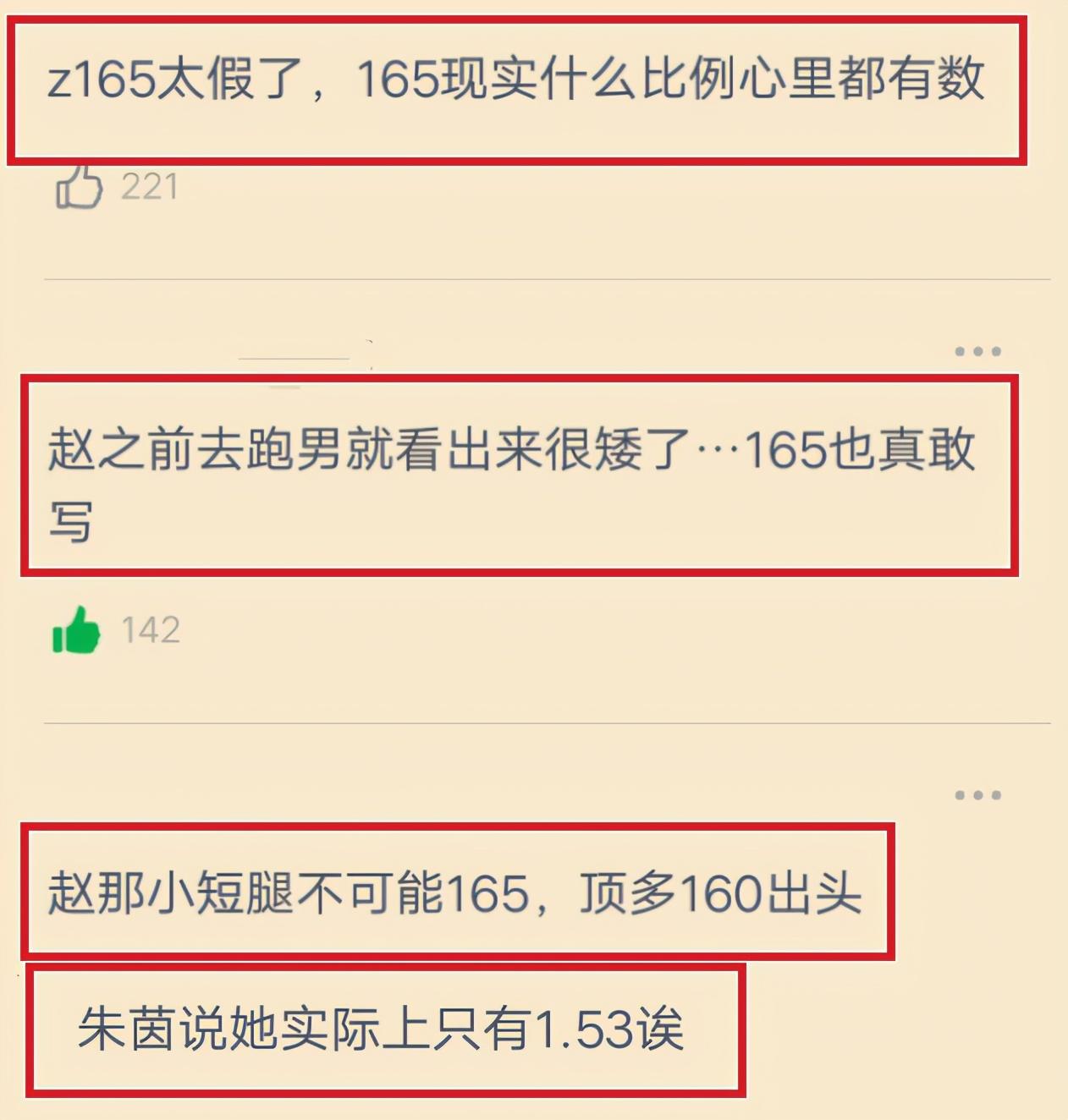 那么朱茵呢?如果赵丽颖身高160,那么朱茵的身高就不到160。但是由于朱茵官宣160,看起来稍微真实一点。赵丽颖官宣165,看起来有点假。