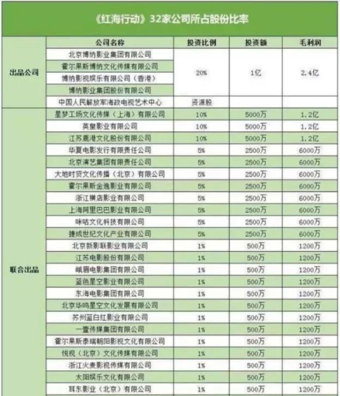 以捷成股份公告出来的5%投资比例与6000万的票房分成进行推算,那就相当于每1%的股份就有1200万的票房分成。此外,影片《红海行动》背后的一位四川投资人,投了百分之十,最终也吸金1.2个亿,电影投资回报率高达240%。