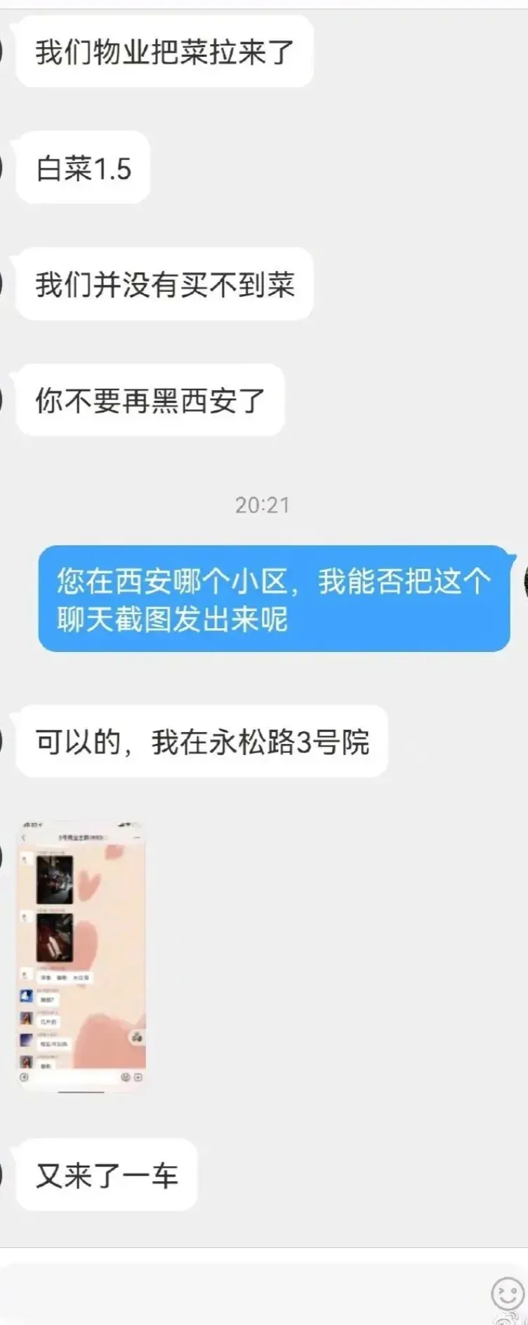 网友:很多人在网络上“抹黑”西安,说西安市民买不到菜,家中断粮!