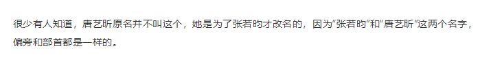 改成唐艺昕既是出道要求,也有说是因为她想跟男友张若昀合拍,故意取了个同样偏旁的名字。