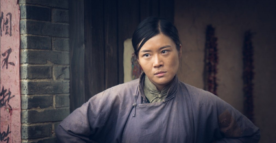 随后李大嘴一出场就是她抱着孩子一脚撬开门躲在门后看着门前小路上的人来人往,那个眼神说不清是向往还是鄙夷;还有她用脚撬开门的这个动作也非常到位,将她的性格一展无余。