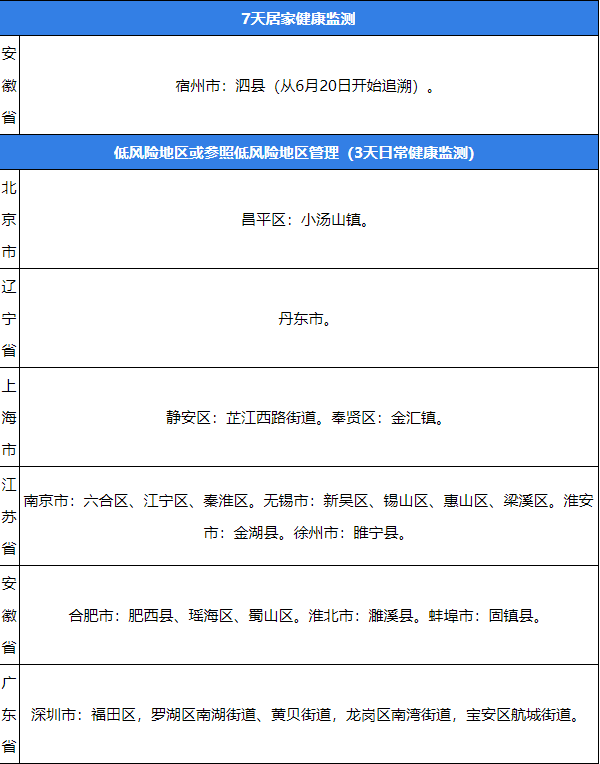 根据国家《新型冠状病毒肺炎防控方案(第九版)》有关中高风险地区涉疫人员管控要求,请有泗县、南京等重点地区旅居史的来(返)钱塘人员第一时间向所在社区或入住酒店报告,有工作单位的同步向所在单位报告,并配合做好相关健康管理措施。如瞒报、迟报、谎报将依法追究相关责任。