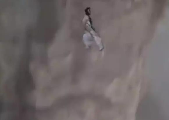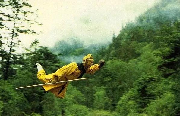 剧组在戒台寺外半山腰的树林里拉了一个“威亚”,来拍孙悟空蹿上天的镜头。第一次拍,因为树林里障碍太多,拉绳的人们跑得太慢,没有孙悟空腾空的愉悦感。于是增加了拉绳的人,调整了奔跑的方向。但此时杨洁没注意,拉绳的人群竟然朝下坡跑。一声“开始”,孙悟空纵身就上了天,但马上就掉下了地!因为绳子断了,六小龄童从大概六米的高度摔了下来,地上腾起一层灰。