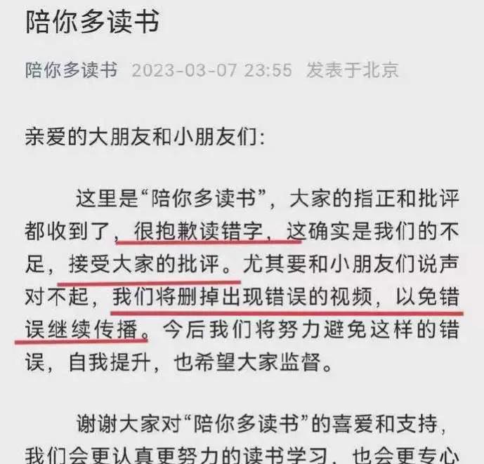 好在,黄多多及时做出了反馈,对于《陪你多读书》读错字问题在平台回应自己的不足并发文致歉,大大方方的接受公众的批评和指正!我想不管怎么样,对一个高二的学生,她的态度还是值得大家认可的。至少没有因为做错了事而执念不改。