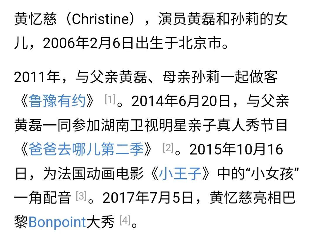 从小就与父亲黄磊频繁参加多档真人秀节目,如:《鲁豫有约》,《爸爸去哪儿第二季》,为《小王子》配音等等……可以说有各种背书的她,资源是非常不错的!
