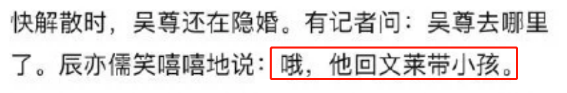 若是以上的言论,还勉强可以被粉丝洗白为:吴尊的人生规划中想要生两个小孩,并且小孩要认辰亦儒当干爹,辰亦儒是在说未来的事情。