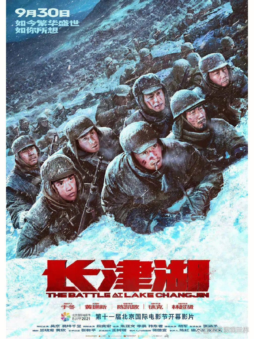 《长津湖》是由陈凯歌、徐克、林超贤联合执导,吴京、易烊千玺领衔主演,段奕宏、欧豪特别出演,朱亚文、李晨、胡军、韩东君等主演的抗美援朝题材电影,该片于2021年9月30日在中国大陆上映。