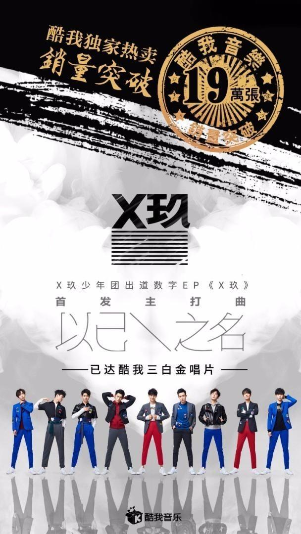 9月24日零点,X玖少年团在酷我音乐独家首发出道EP《X玖》,上线10小时突破10万,上线11小时达到“白金唱片”,成为酷我最快冲破三白金唱片的标杆EP。首支主打单曲《以己之名》在酷狗、酷我双平台上线后,一分钟累计销量破一万。