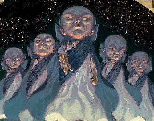 在漫威十大外星种族中,是最古老的种族,他们看了世界上所发生的一切,他们认为自己无所不知,可以任意穿梭平衡宇宙,他们可以创造宇宙,同时他们也消耗着宇宙中的能令,从而不断的毁灭宇宙,不过他们被雷神和凤凰给打败,然后终结了他们的时代。